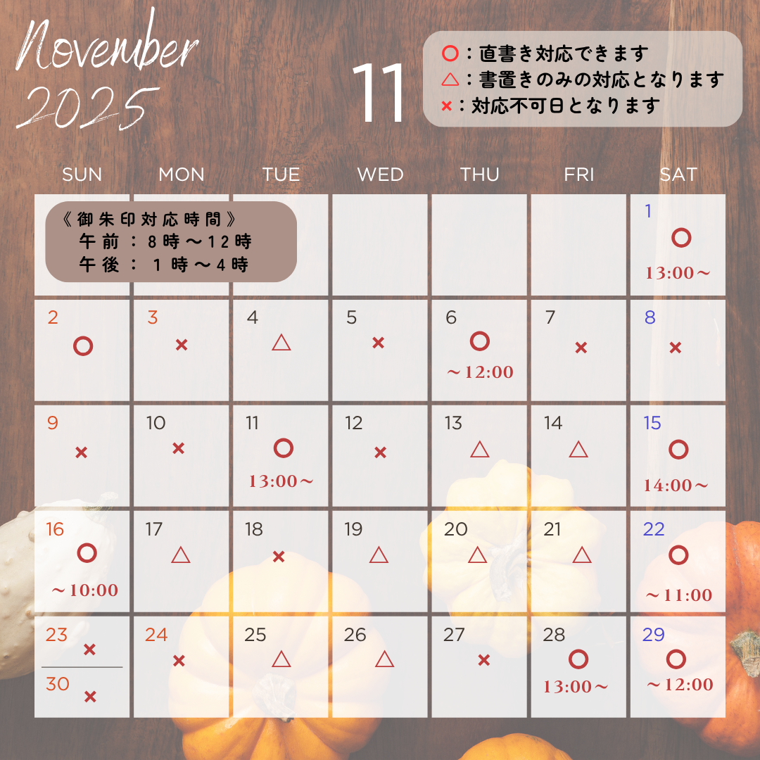 | 2025年10月28日 | 11月の御朱印カレンダーをアップしました。