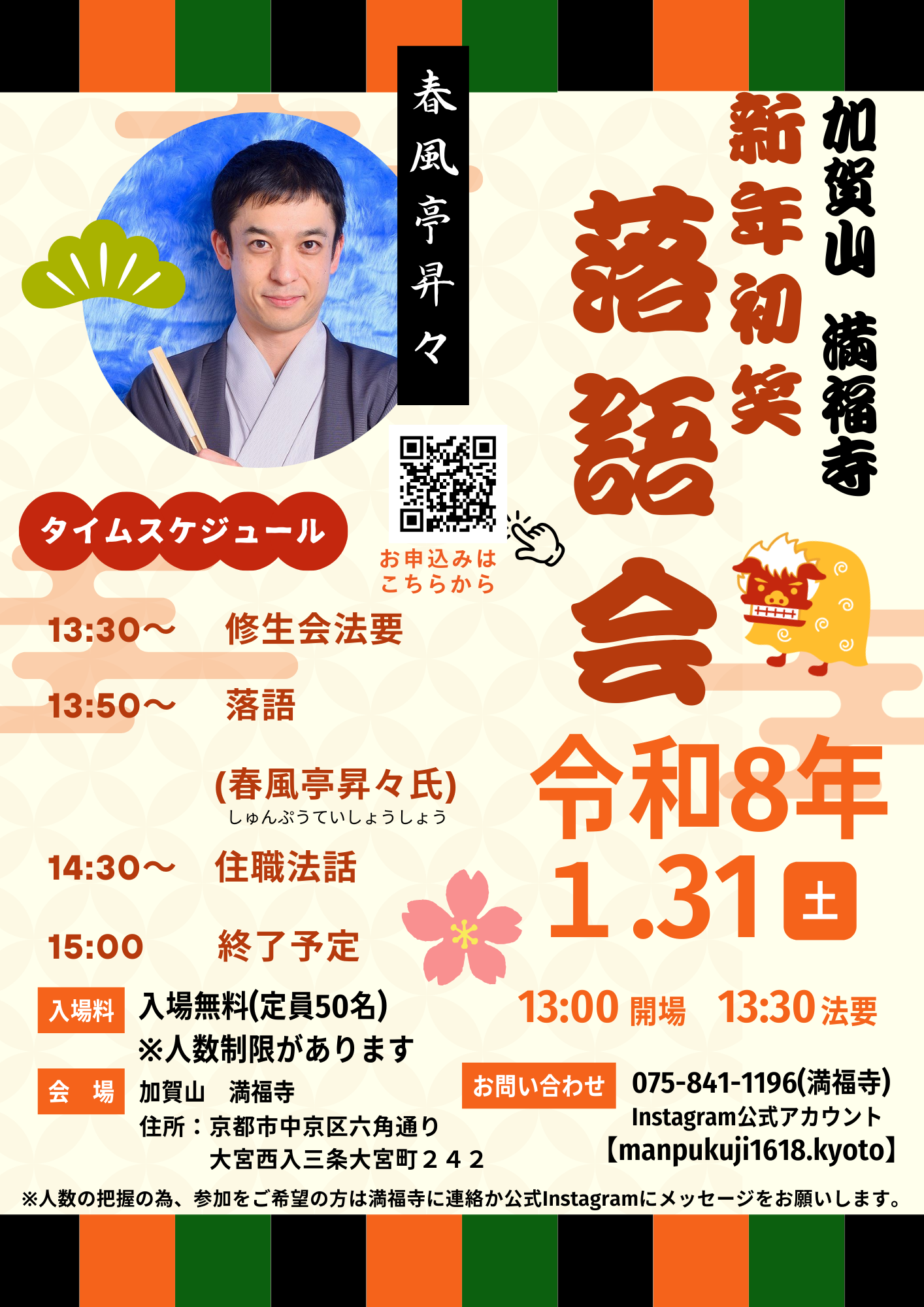 | 2025年4月13日 | 令和7年度年間予定表をアップしました。今年度も『念仏のつどい』や『落語会』を開催する予定です。満福寺にお参りに来ていただき、ご縁を結べると嬉しいです。 令和7年度満福寺年間予定☜こちらをクリックしてください。 |